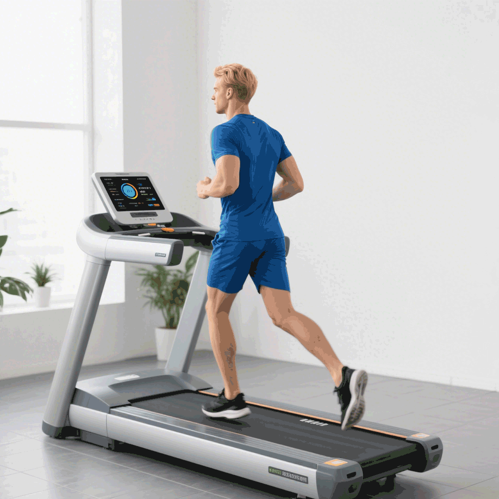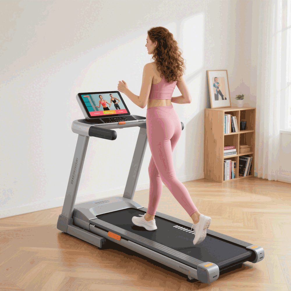 The SmartFit Treadmill features a sleek silver – gray body and a vivid color display. With a wide speed range and high – capacity load, it offers multiple running programs and seamless mobile connection, perfect for home and gym use.